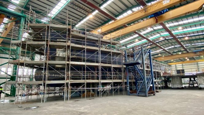 The superstructure is currently being built in the shipyard’s facilities in Ravenna, Italy, while more work, such as painting and fairing is planned for the beginning of 2020. The exterior design of superyacht RSY 38M EXPLORER was created by Hydro Tec.
