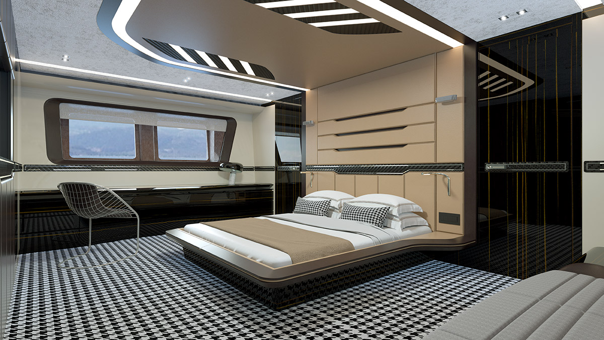 Superyacht GTT 115 – Master suite rendering. Photo credit Dynamiq