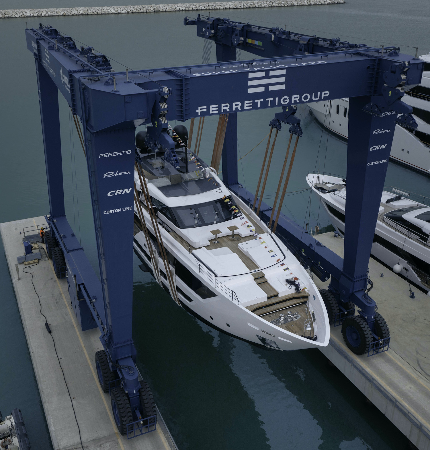 This image is featured as part of the article Custom Line 106 motor yacht CIAO M hits water in Italy.