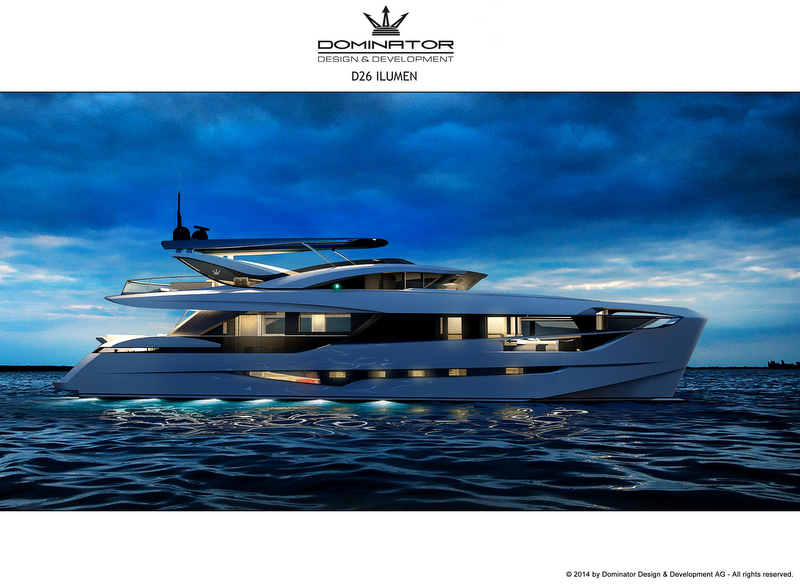 This image is featured as part of the article New D26 M motor yacht ILUMEN unveiled by Dominator at Cannes Yachting Festival 2014.