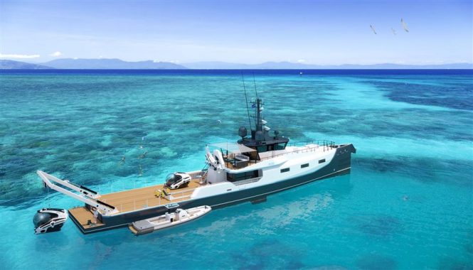 Yacht support vessel YS 4508 measures 45.60m/150ft and features the improved design of guest living spaces. Thus, the sun deck of 28 sqm is ideal for sunbathing and worshipping the sun, and when not in use can serve as a room to carry jetskis and water toys. This vessel features zero-speed stabilisers, reduce noise and vibrations, as well as fantastic maneuvrability. YS 4508 will have 3 generator sets with automated power management, 75 kVa shorepower converter for global use, dedicated petrol store, 20,000 litres fresh water tanks, watermaker with a capacity of 4,300 per day and waste water tanks of 15,000 litres.
