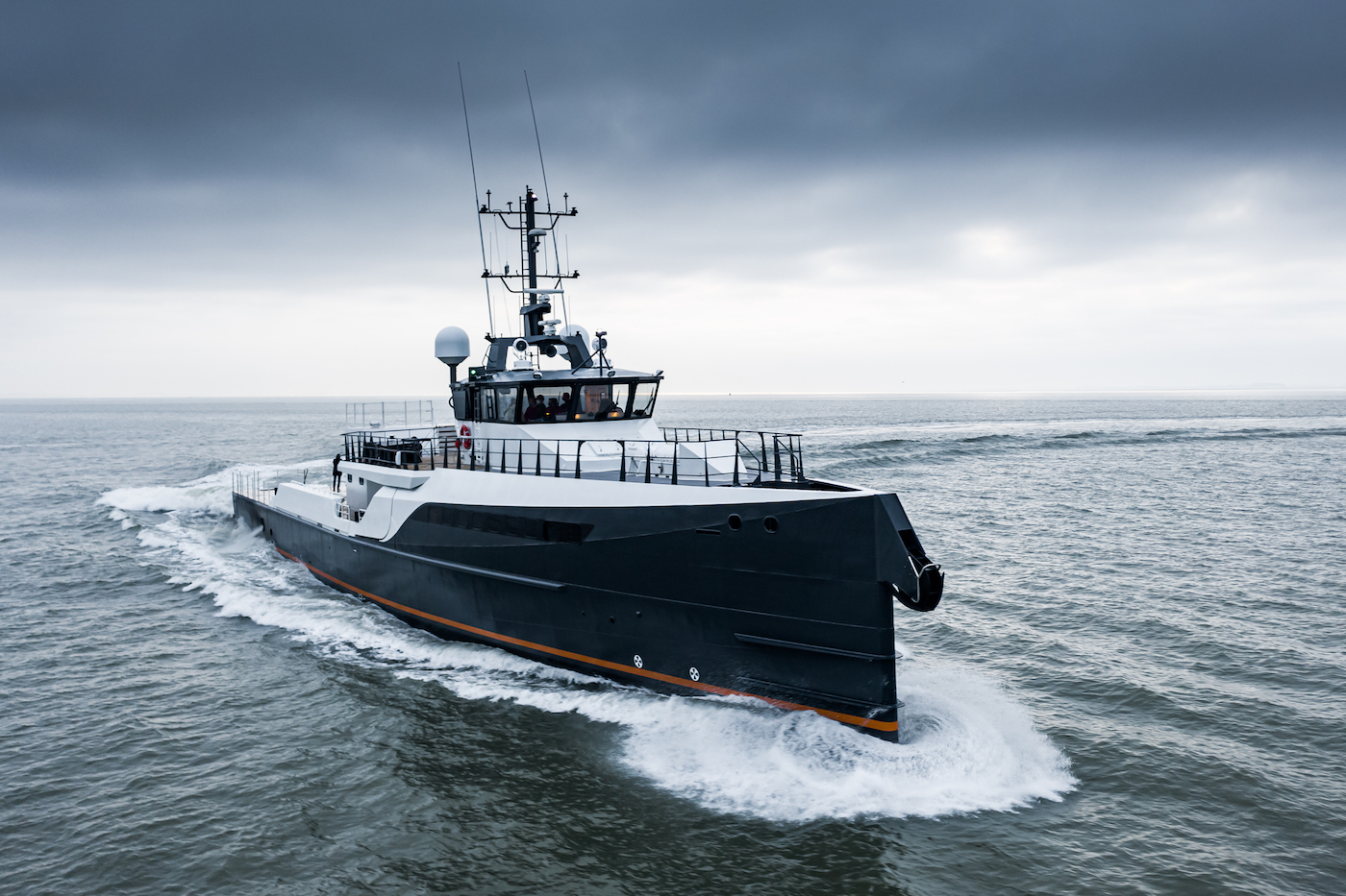 Please contact CharterWorld - the luxury yacht charter specialist - for more on superyacht news item "GENE CHASER Yacht Support on sea trials at Damen Yachting - bow view".
