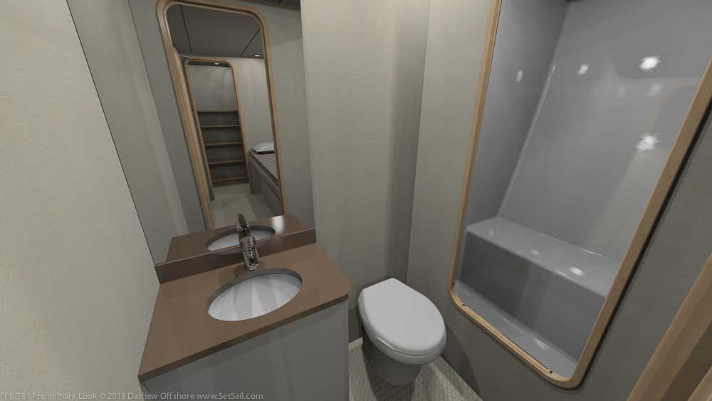 Please contact CharterWorld - the luxury yacht charter specialist - for more on superyacht news item "Dashew FPB 78 Yacht - Bathroom".