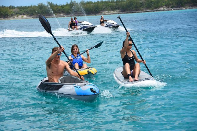 You can top up your tan on one of the many sun loungers found on the sun decks or flybridge. If you prefer, the crew will launch a couple of jet skis so you can show off your skills in the water. How about trying an inflatable toy like a banana boat or do a little water skiing? There are always tenders to hop on and be towed along which is great fun.