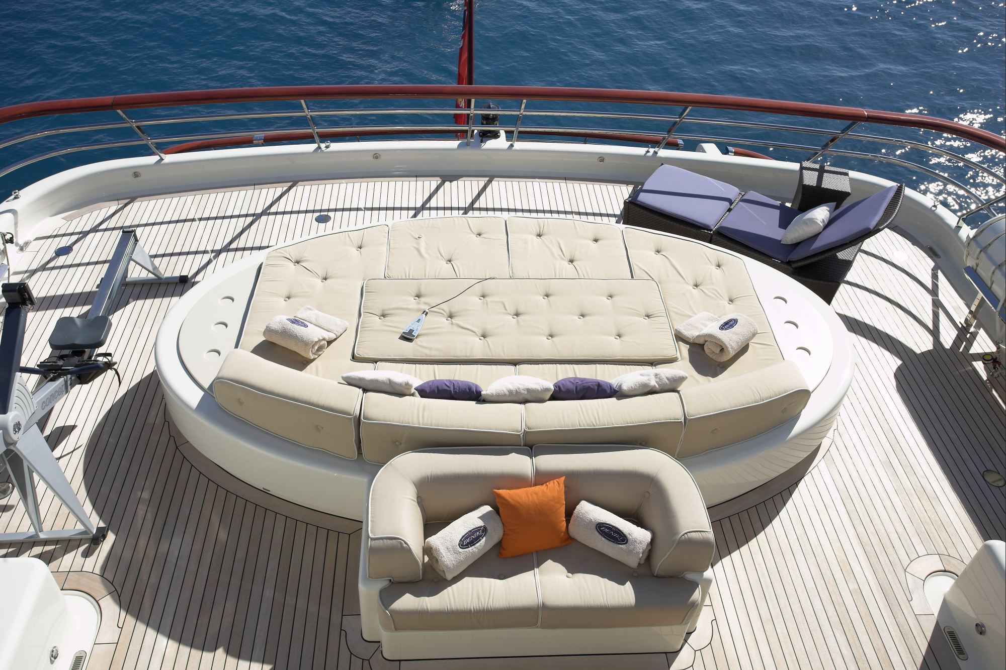 Sunpads and massage water bed on the upper deck aft of motor yacht DENIKI