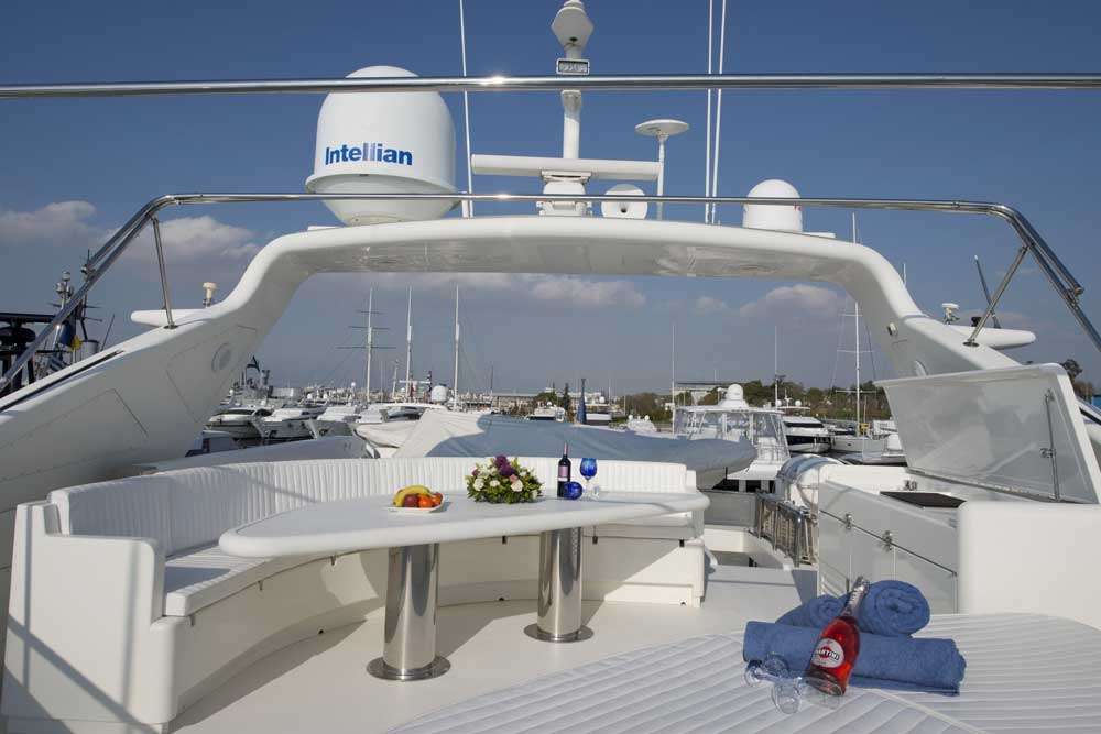 Please contact CharterWorld - the luxury yacht charter specialist - for more on superyacht news item "Flybridge with alfresco dining area and sunbathing area".