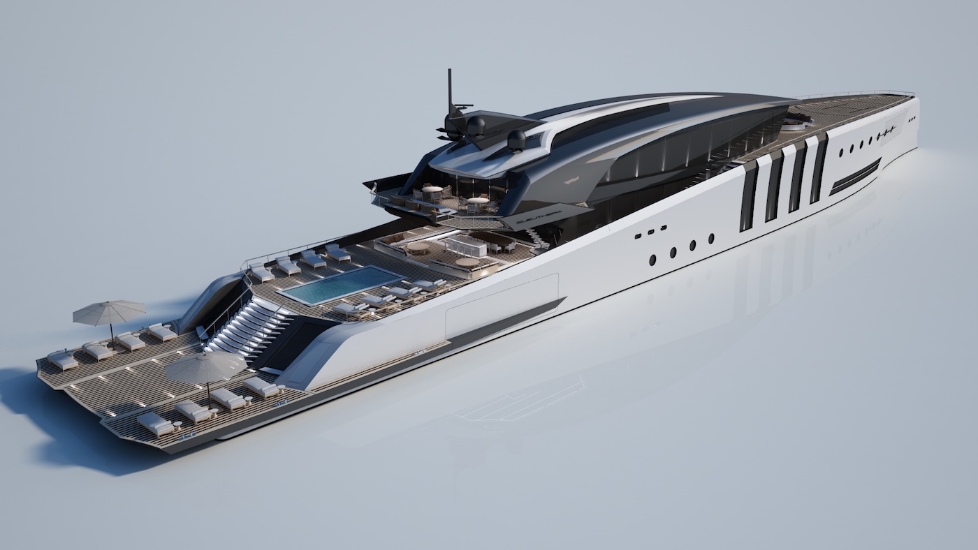 This image is featured as part of the article ELEUTHERA – 100m mega yacht concept by Azcarate Design.