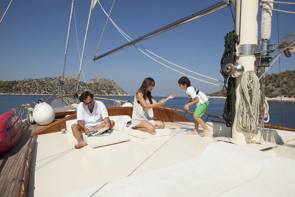 Relaxing aboard the traditionally-styled gulet