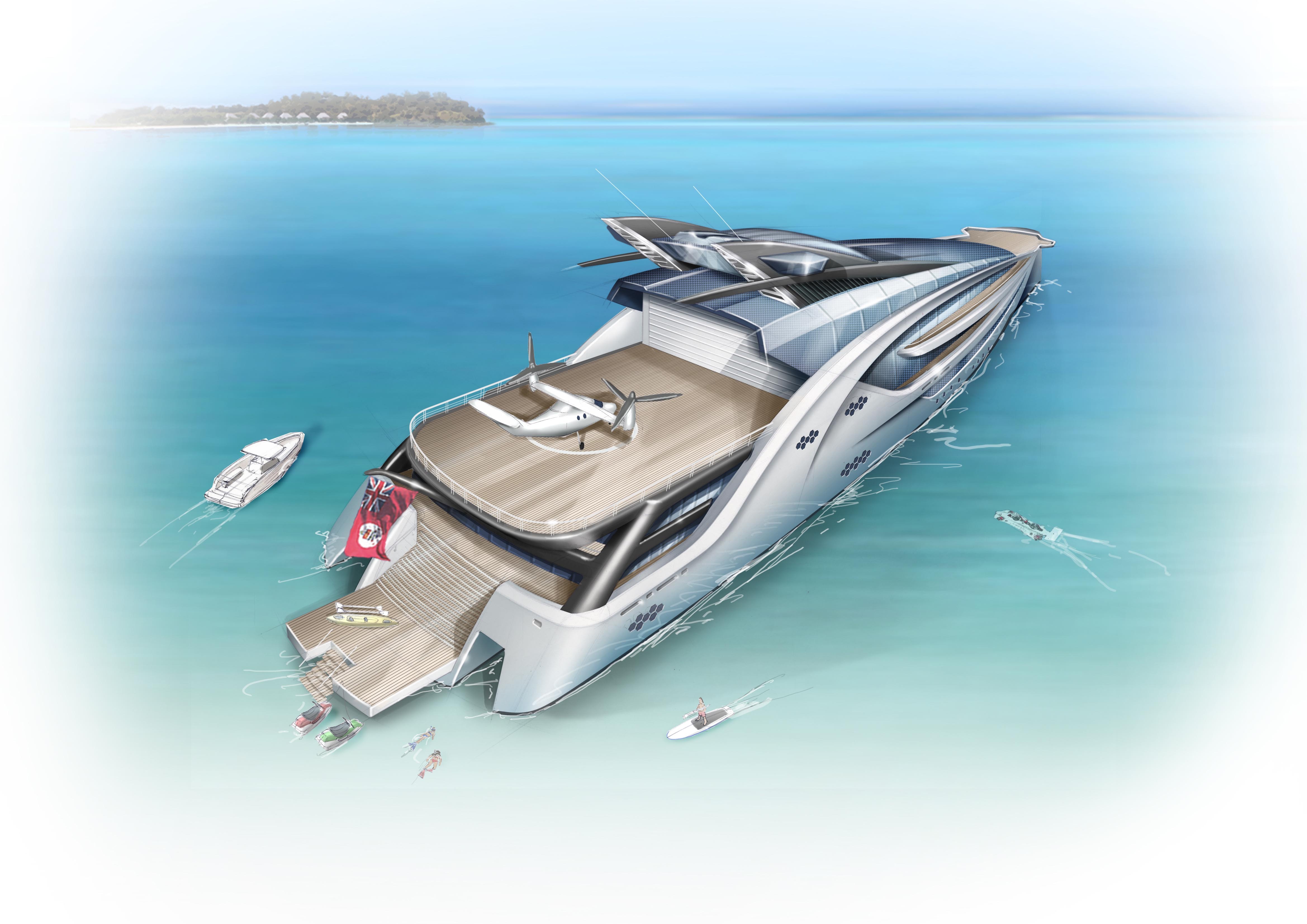 Please contact CharterWorld - the luxury yacht charter specialist - for more on superyacht news item "100m Trimaran concept - aft view".
