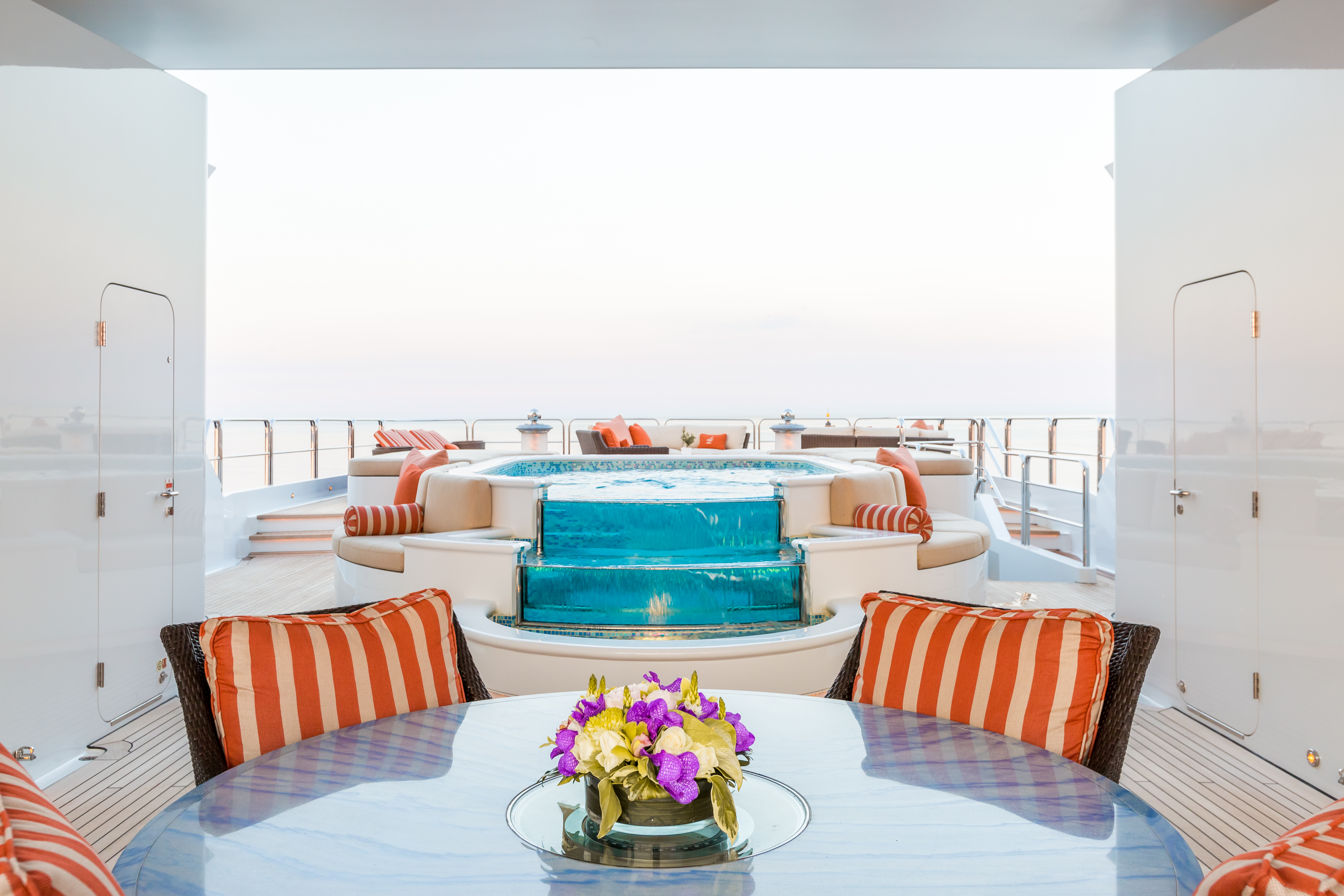 Luxury yacht LUCKY LADY – Sundeck alfresco dining and pool