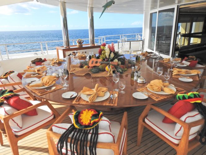 The team together with the chef organized a different theme for each meal, spanning Cuban, Caribbean, Greek, Mexican and several others, with every detail covered -  the food, drink, decorations, table settings and stewardesses’ outfits and music. Each meal was prepared and presented with exquisite care – the chef’s work deserves patient and appreciative attention. The stewardesses were delightfully marshalled by Rochelle who was always one step ahead of the guests regarding their likes, preferences, dislikes and what they wanted to do next…and is a high-level selling point for any client group.