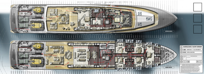 65m Barracuda Explorer super yacht design – Upper & Main Deck