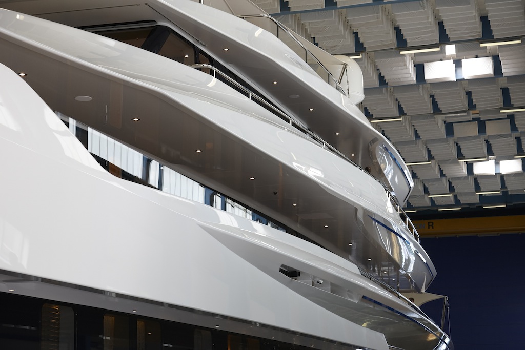 Bannenberg & Rowell-designed 70m motor yacht Hull 812 enters dry dock at Feadship Royal van Lent yard