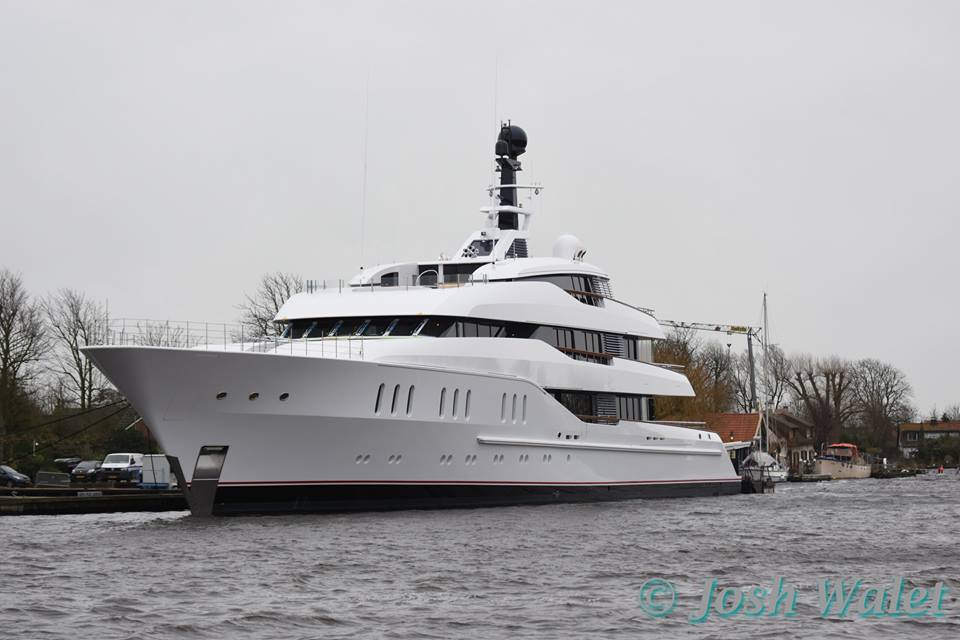 Outstanding 75m Feadship Motor Yacht EBONY SHINE (ex Ocean Victory) arrives in Harlingen, the Netherlands