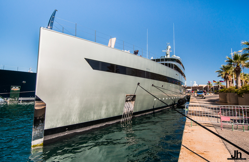 Motor yacht SAVANNAH anchored in Antibes – Photo by Julien Hubert