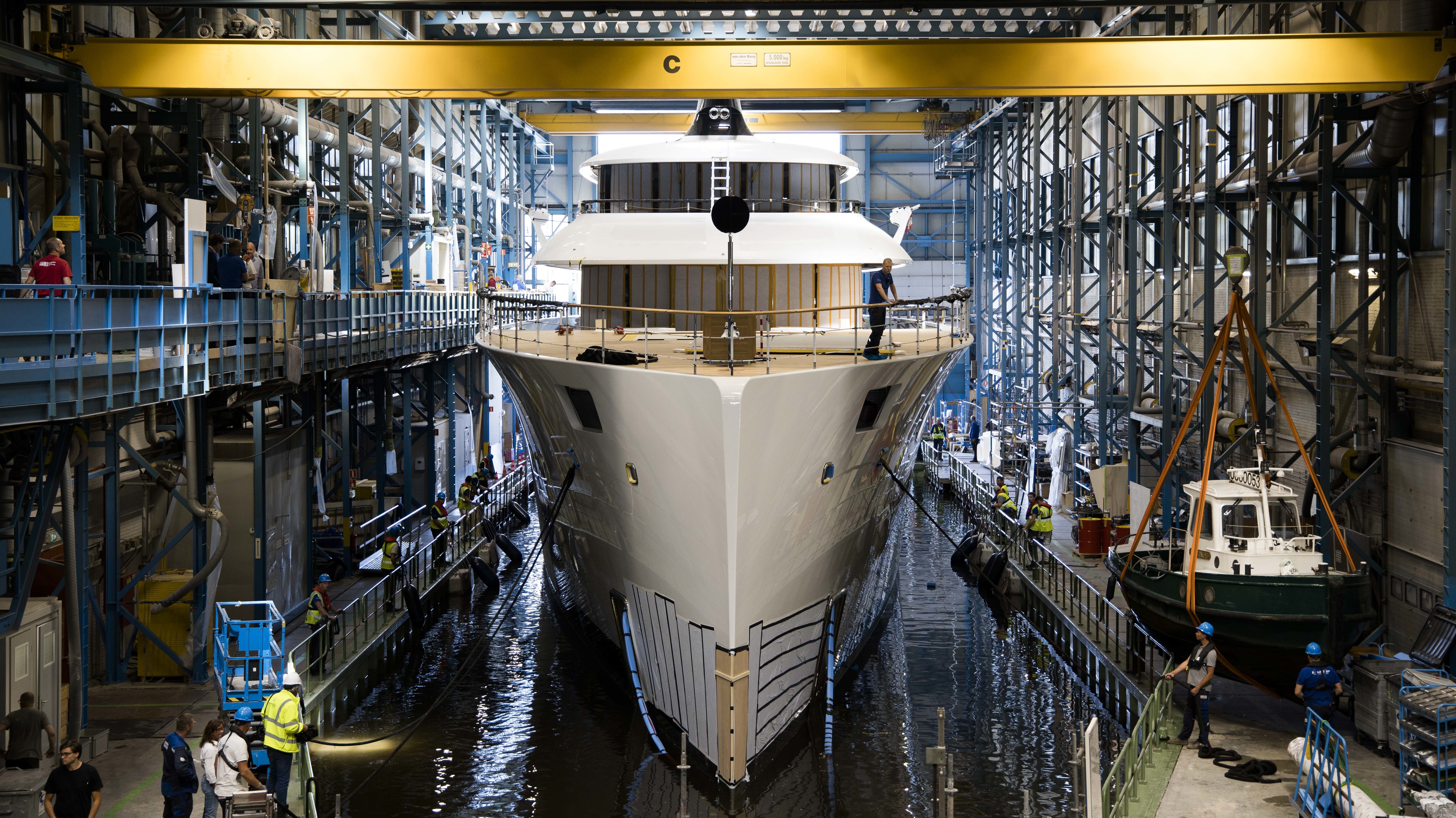 Feadship-Project-818 in the shed. Photo credit Feadship