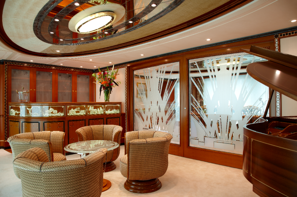 Please contact CharterWorld - the luxury yacht charter specialist - for more on superyacht news item "Feadship Super Yacht Lady Christine - Main Deck Lounge - Mini Deck Bar".