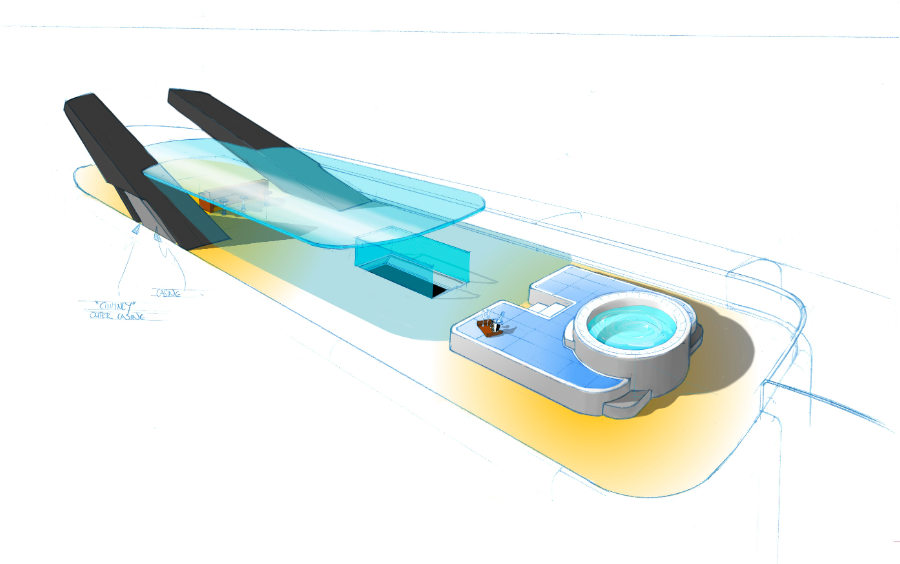 Feadship Breathe Yacht Concept – The spectacular sun deck has a Spa Pool placed forward and a bar located aft beneath the shade of the uppermost shell