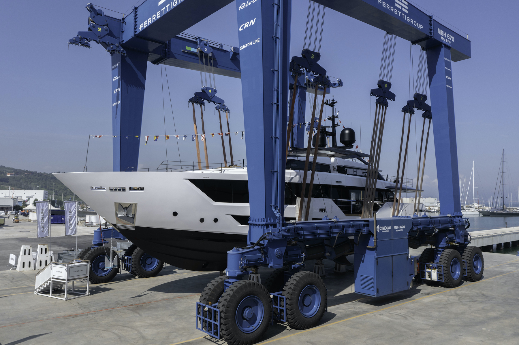 This image is featured as part of the article Ferretti Group’s Custom Line 106′ motor yacht ETOILE hits water in Italy.