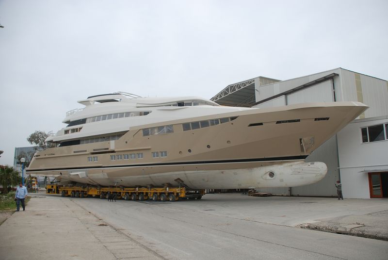Gentech-built superyacht Soraya 46 being moved to a new shed for finalization