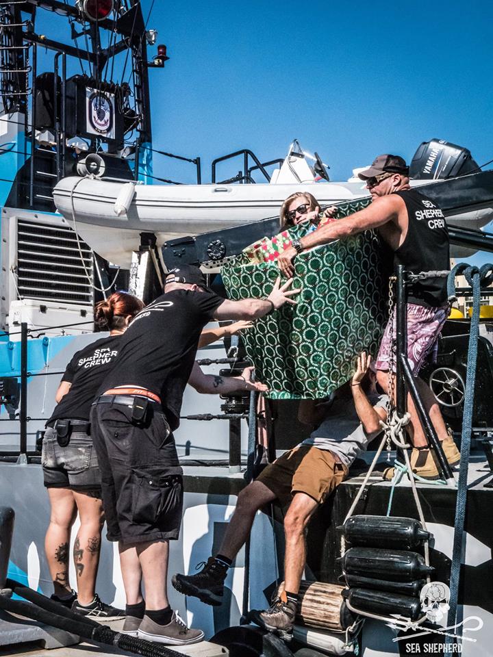 Gifts being loaded, courtesy Sea Shepherd – Katrin York