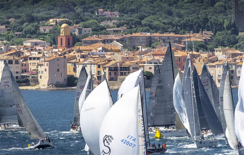 Fleet in action during inshore racing in Saint Tropez – Photo credit to Rolex Kurt Arrigo