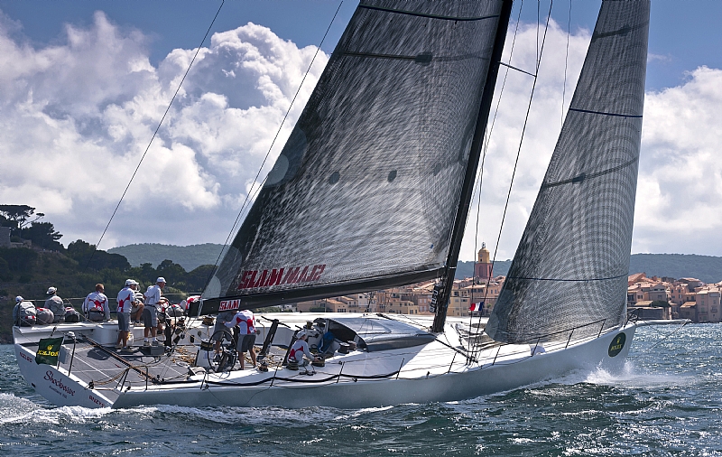 Sailing yacht SHOCKWAVE, St. Tropez at the background