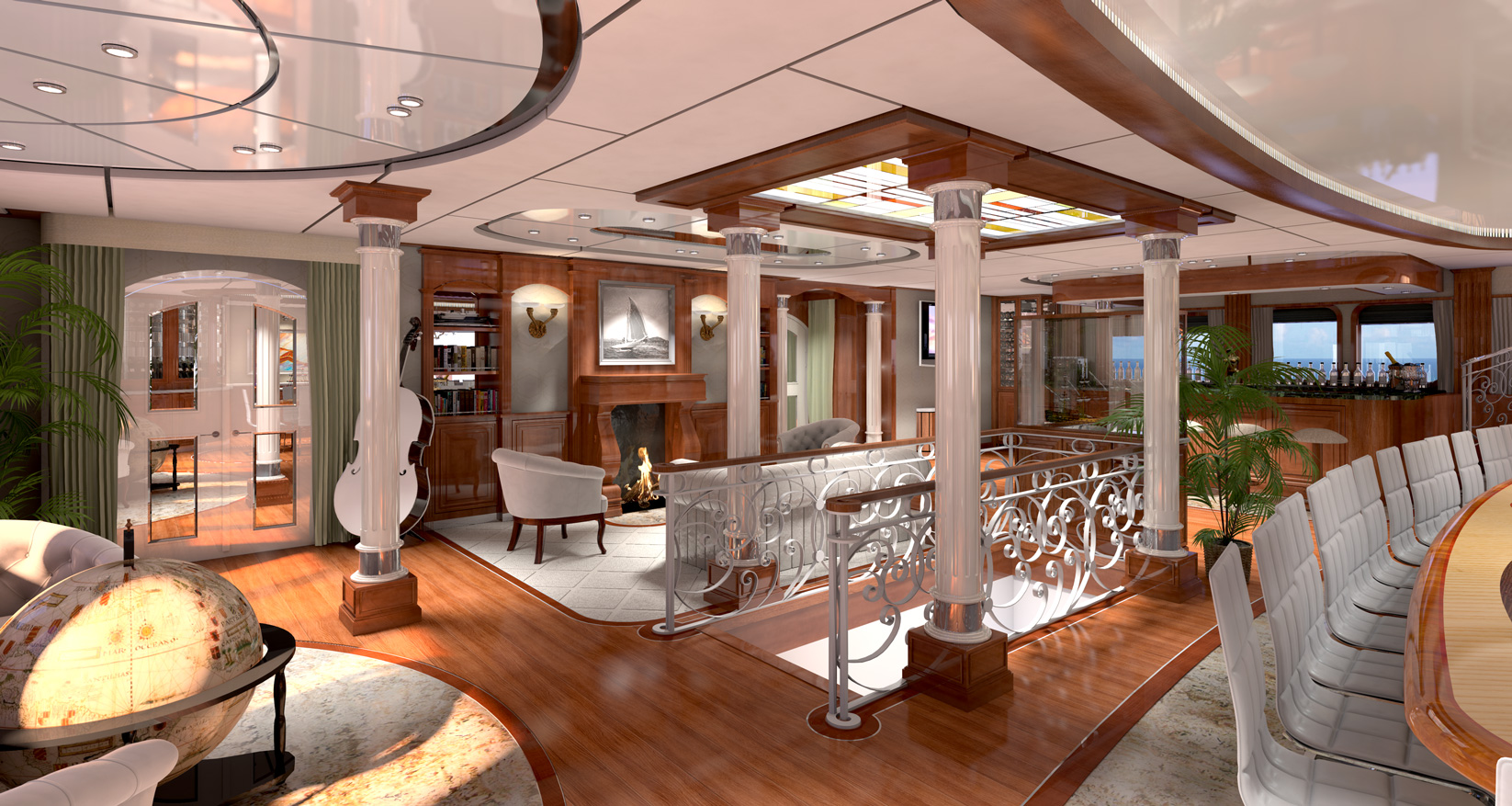 Please contact CharterWorld - the luxury yacht charter specialist - for more on superyacht news item "Rendering of the main salon aboard explorer yacht LEGEND".