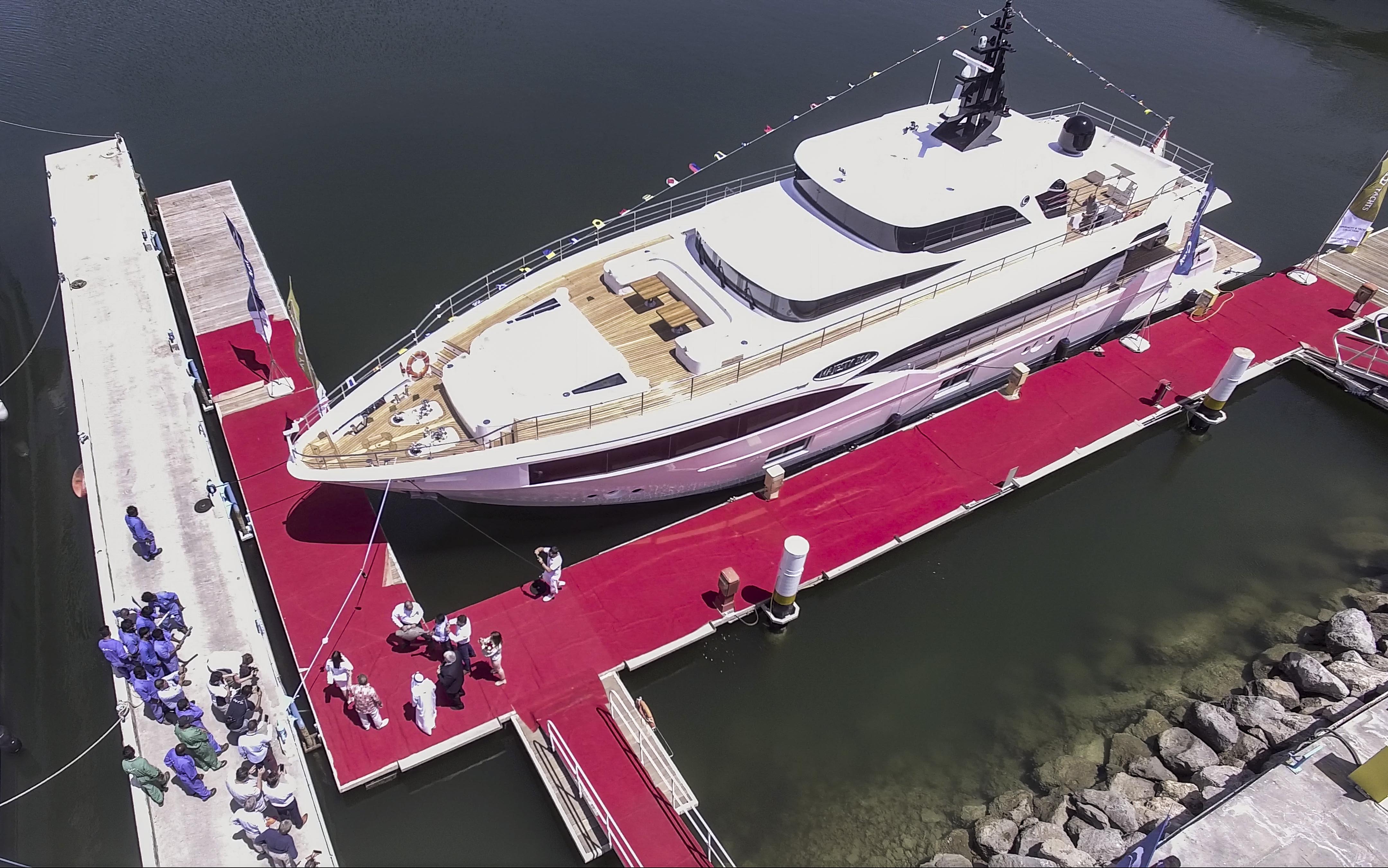 This image is featured as part of the article Gulf Craft delivers seventh 32-metre Majesty 100 hull, now namd Piterland II.