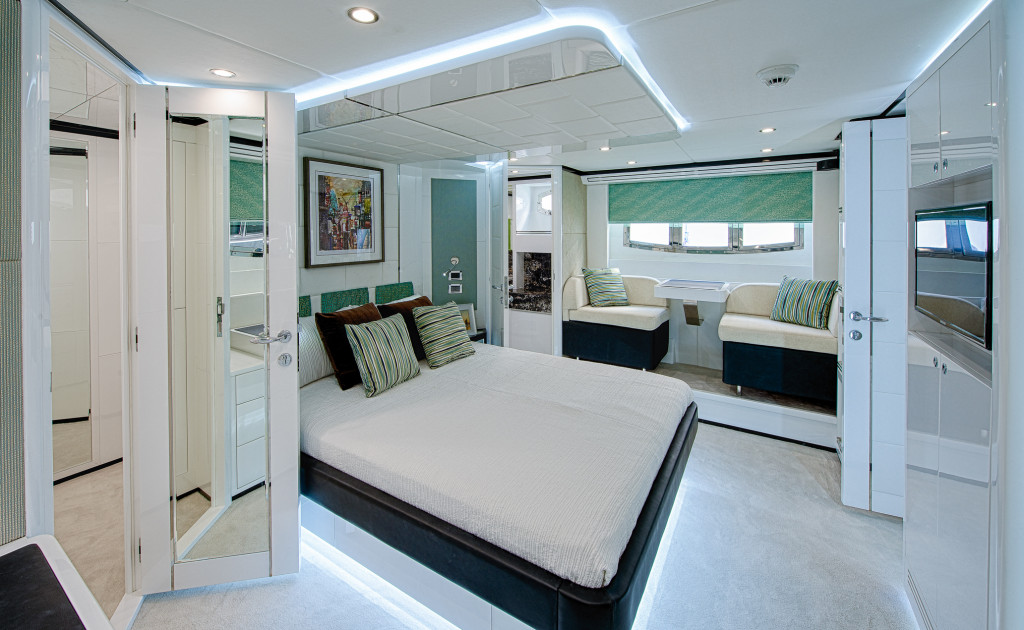 Please contact CharterWorld - the luxury yacht charter specialist - for more on superyacht news item "Majesty 70 Yacht - Owners Stateroom".