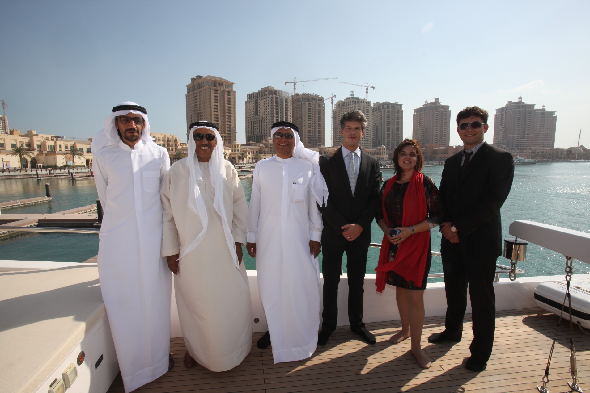 Gulf Craft’s Yachting Lifestyle Show in Qatar Hussain Alshaali, Mohamed Alshaali, Dr. Hamdan Alshamsi, Erwin Bamps, Elena Crosetto, Denis Bochkarev – Credit Gulf Craft