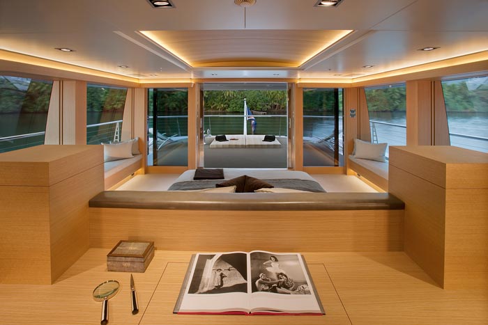 Luxury yacht BIG FISH – Master suite with views out onto the upper deck aft