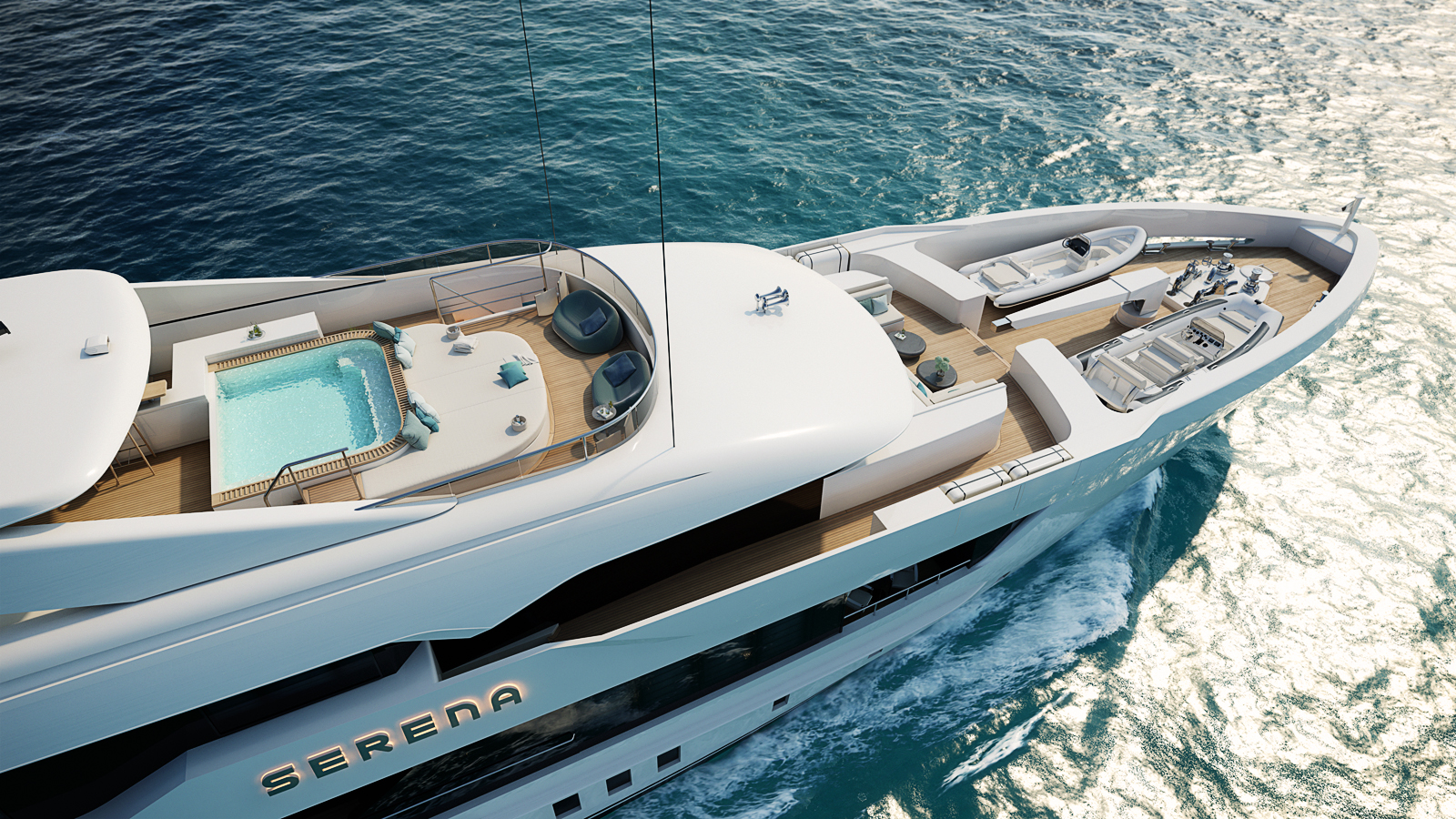 aerial view of the bow section and sun deck