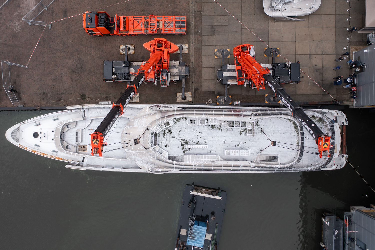 This image is featured as part of the article Heesen luxury yacht PROJECT OSLO24 hull and superstructure now joined.