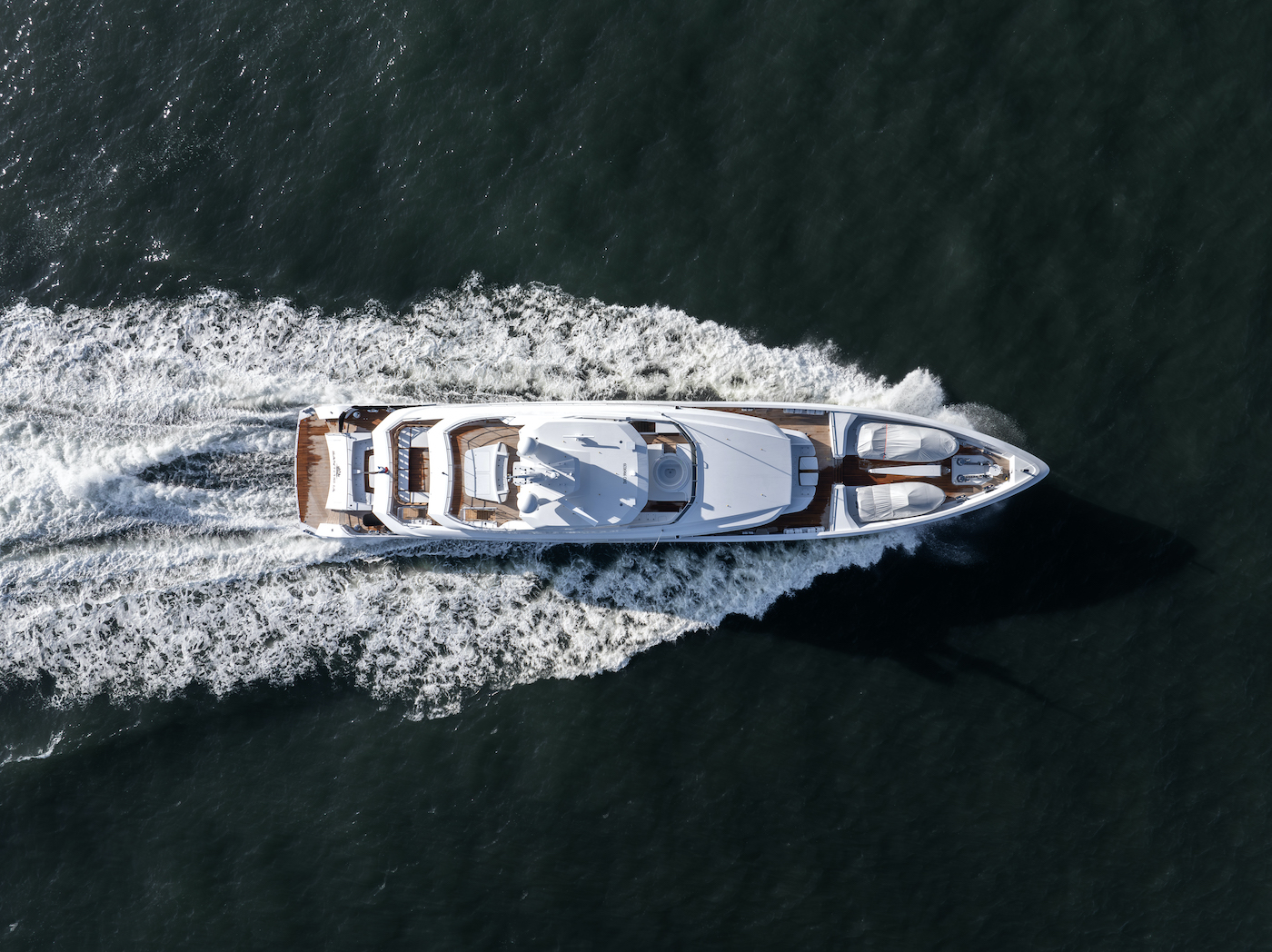 Please contact CharterWorld - the luxury yacht charter specialist - for more on superyacht news item "Aerial view of Santosha on sea trials - Photo © Ruben Griffioen".