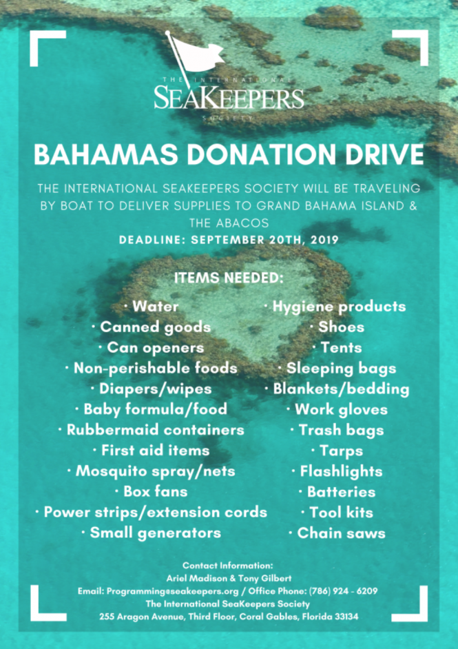 On the 5th of September Bradford Marine in Fort Lauderdale held a BBQ and pig roast to raise money, while the International SeaKeepers Society is still collecting donations ranging from baby formula and mosquito repellent to batteries and chainsaws, the final date for donations being the 20th of September.