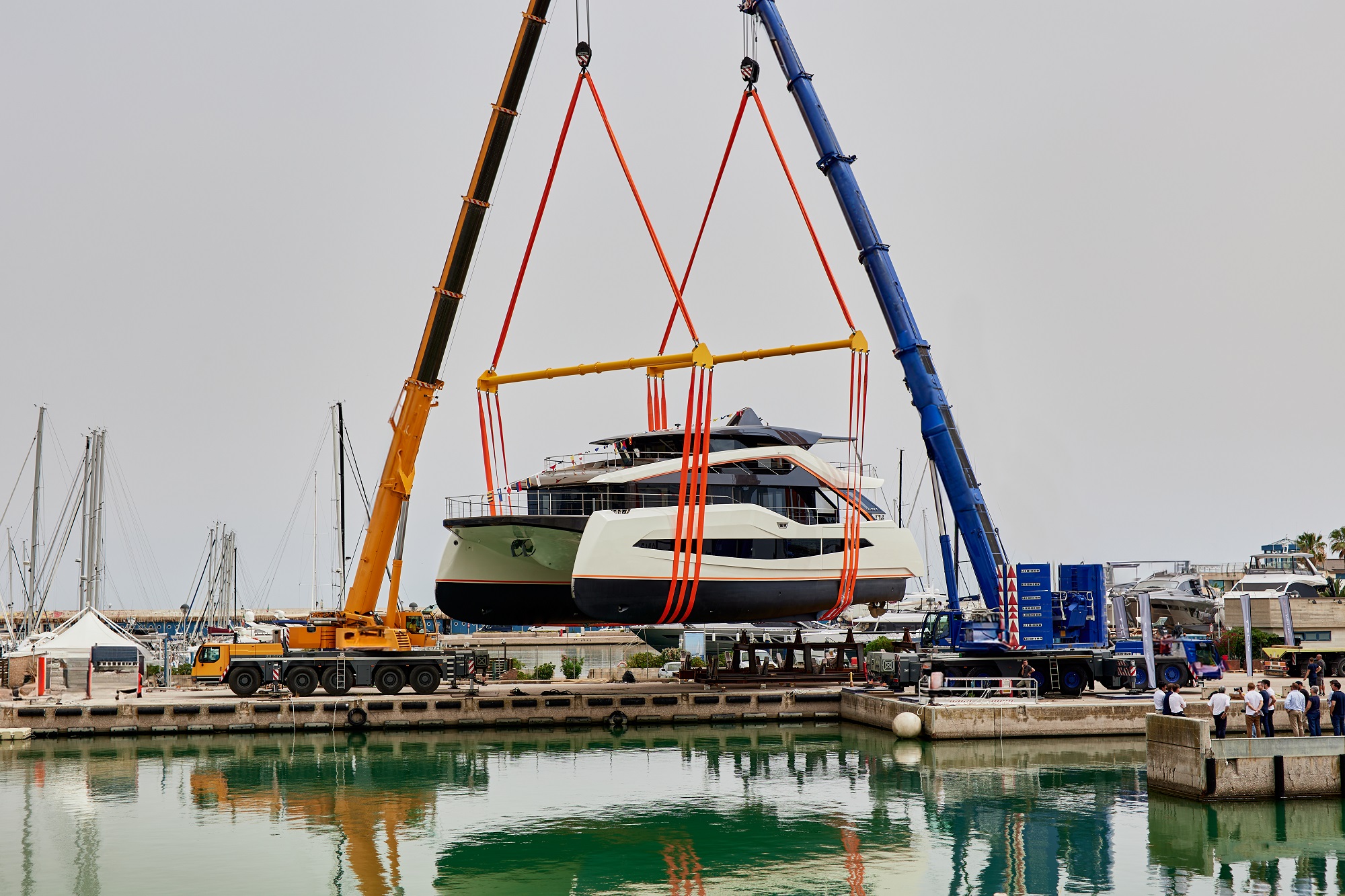 This image is featured as part of the article Hybrid 28m motor catamaran ATALI launched by Wider Yachts.