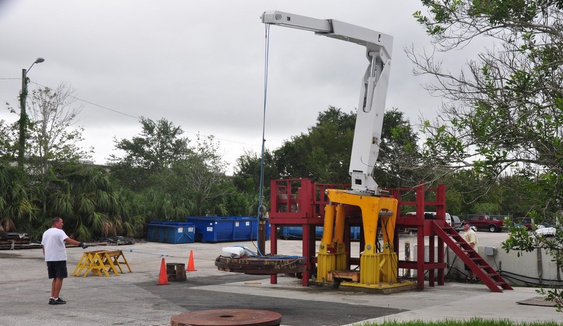 The SOLAS Classed Folding Crane being load tested at the Nautical Structures factory