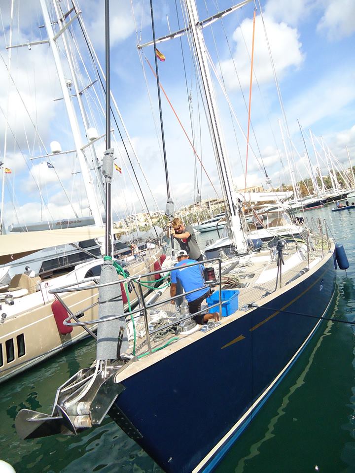 This image is featured as part of the article Images: RSB Rigging preparing for unstepping of 25m Oyster sailing yacht Starry Night rig.