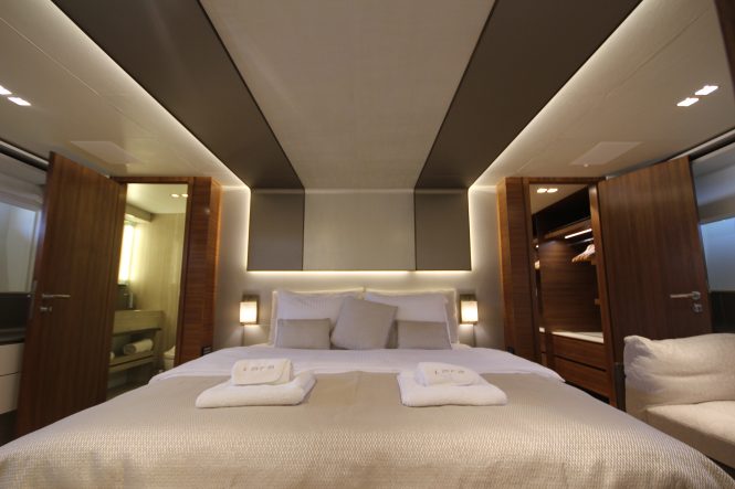 The Owner worked closely with the shipyard to guide the process for a more personalised touch, and the result is a beautifully lit, modern and efficiently laid out interiors that use a natural colour palette.