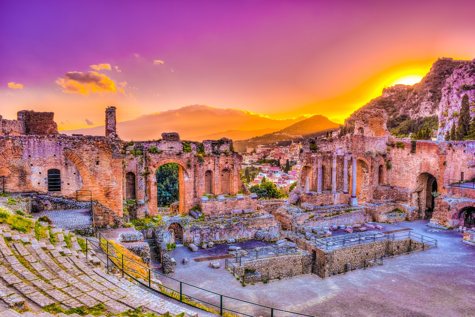 Please contact CharterWorld - the luxury yacht charter specialist - for more on superyacht news item "The Ruins of Taormina Theater at Sunset. Sicily".