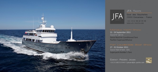 JFA Yachts proud to announce their presence at the 2011 Monaco Yacht Show held from 21st to 24th September this year. Following the European Show, the French yacht builder will also be present at the 2011 Fort Lauderdale Boat Show, which will take place from the 27th to 31st October.