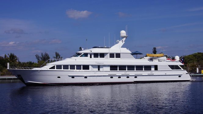 LOA: 37m/120ft ǀ Built: 1995/2015 ǀ Guests: 8 ǀ Cabins: 4 ǀ Crew: 5 ǀ Notable features: Sundeck Jacuzzi, outdoor cinema