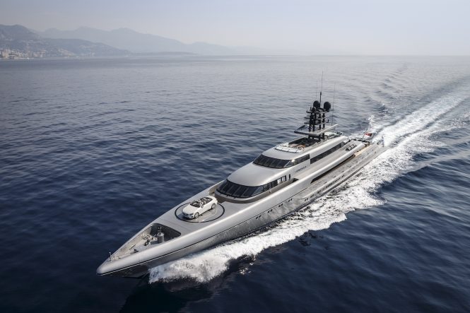 LOA: 77m/273ft ǀ Built: 2015 ǀ Guests: 12 ǀ Cabins: 8 ǀ Crew: 17 ǀ Notable features: Approved RYA Water Sports Centre, massage room, sundeck Jacuzzi, helipad