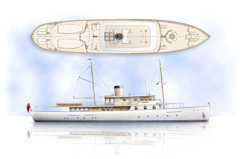 This image is featured as part of the article Latest 42m Gentleman’s Motor Yacht concept by Rhoades Young Design.