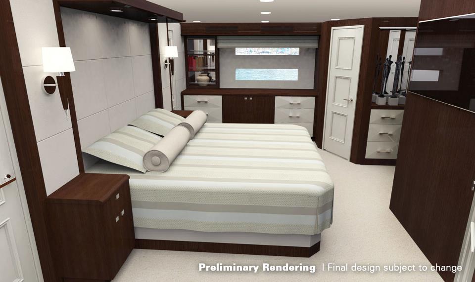 Please contact CharterWorld - the luxury yacht charter specialist - for more on superyacht news item "Preliminary rendering of the Hatteras 100 RPH yacht's cabin".