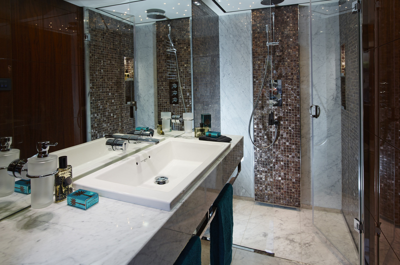 Please contact CharterWorld - the luxury yacht charter specialist - for more on superyacht news item "Luxury yacht Princess 32M - Starboard Aft Cabin Bathroom".