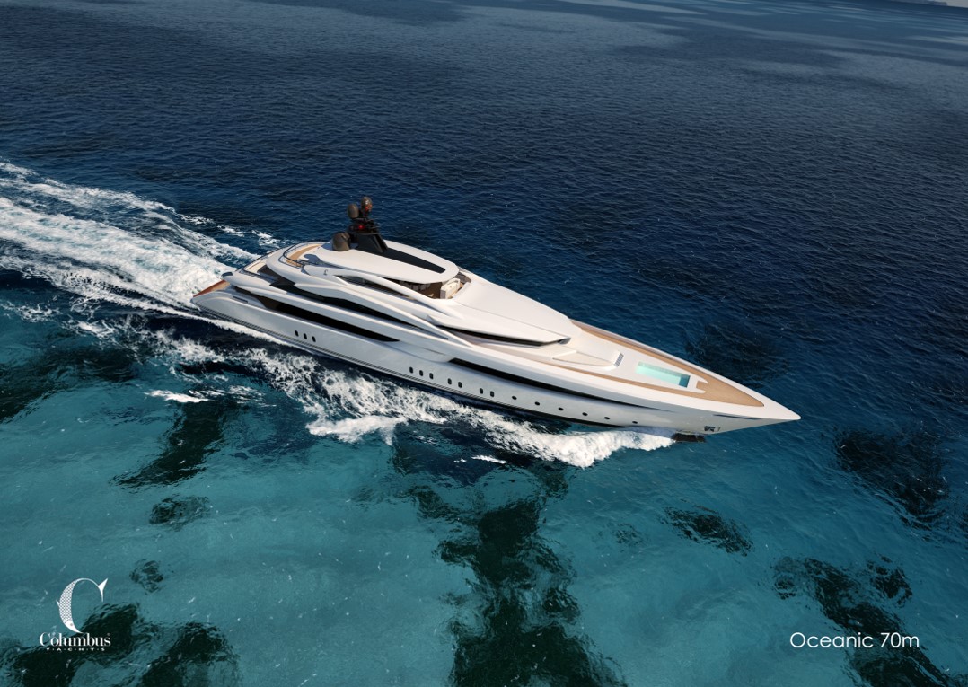 Rendering of Columbus Oceanic 70 Superyacht – side view