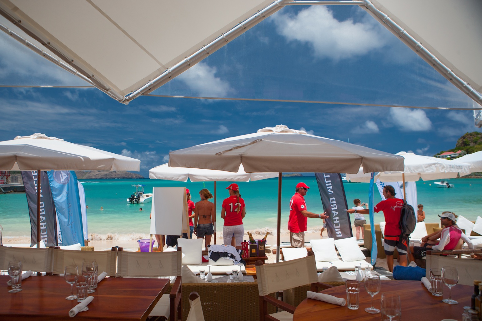 Down time at Nikki Beach for the competitors at Les Voiles de St. Barth