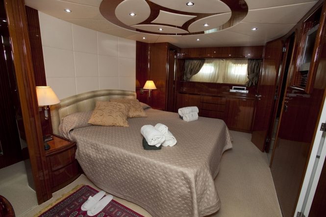 The accommodation sleeps a maximum of 8 guests over 4 cabins: 1 Master suite, 1 VIP stateroom and 2 twin cabins. The professional crew of 4 will ensure that everything runs smoothly throughout your holiday and that you see the very best of every destination.
